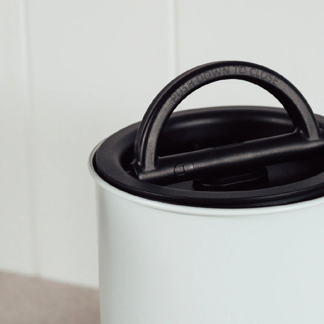 Αεροστεγές μεταλλικό δοχείο αποθήκευσης καφέ που διατηρεί τη φρεσκάδα και το άρωμα, αφαιρώντας τον αέρα με το πατενταρισμένο σύστημα Airscape®.